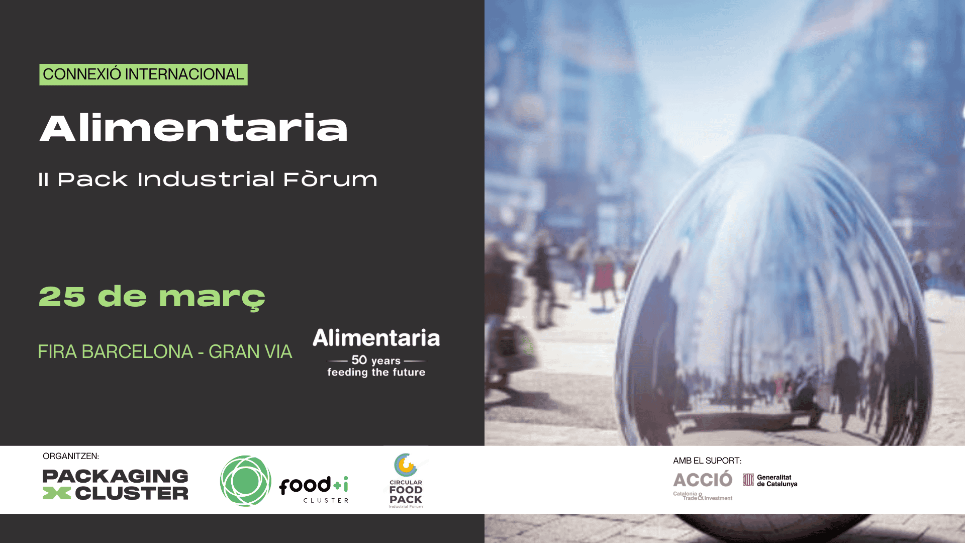 El Circular Food Pack Industrial Forum es planteja com un espai de reflexió i contrast al voltant del paper estratègic del packaging en la indústria alimentària, posant el focus en els principals reptes del sector i en les línies d'innovació que estan definint la seva evolució cap a models més sostenibles.