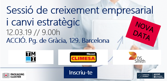 11.45 Taula rodona. Debat amb els ponents. 12.00 Fi de la jornada INSCRIPCIONS Acte exclusiu per a socis del Clúster del Packaging i empreses sòcies de clústers del programa Catalonia Clusters d'ACCIO. Altres empreses, sota invitació.Sigues el primer a confirmar