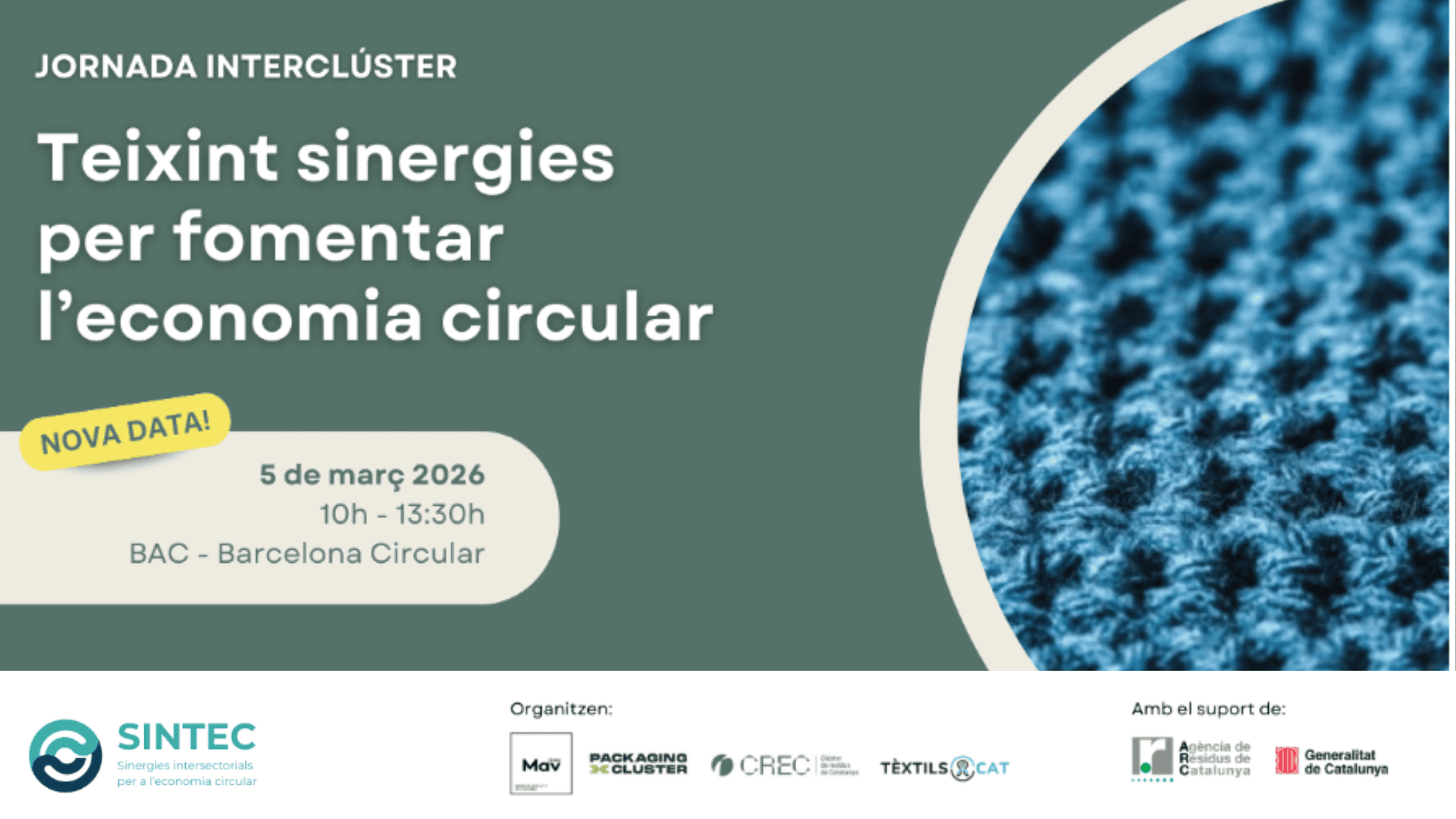 Inscriu-te a la propera Jornada Interclúster: Teixint sinergies per fomentar l'economia circular. No t'ho perdis!