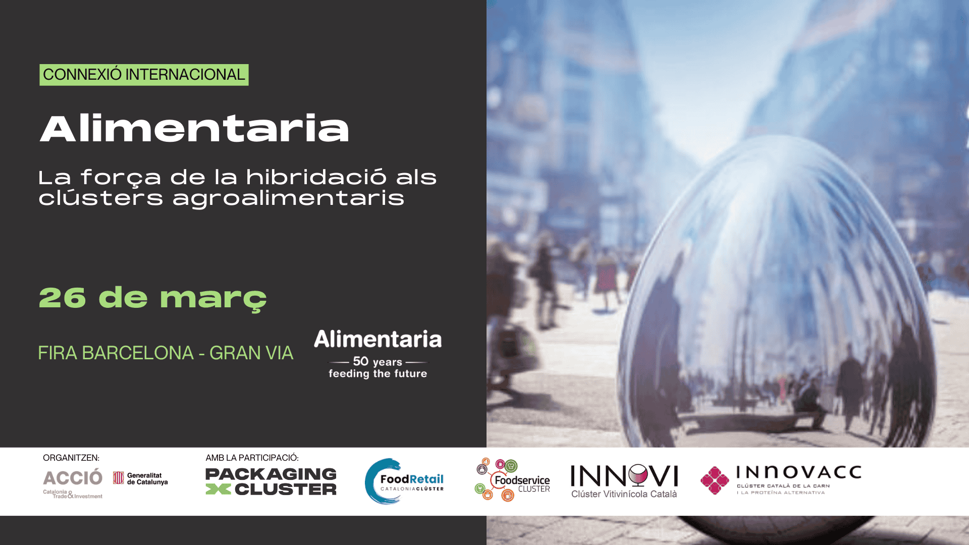 Afegir al calendari2026-03-2611:002026-03-2613:30Europe/MadridAlimentaria | La força de la hibridació als clústers agroalimentaris